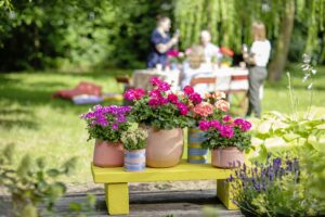 Culorile vii sunt la mare căutare și rămân în tendințe pentru decorarea spațiilor exterioare. Nu doar mobilierul și accesoriile pot fi pline de viață, ci și florile. În locul celor monocrome, alege mușcate în culori aprinse, care să aducă o explozie de culoare în ghivece și jardiniere.